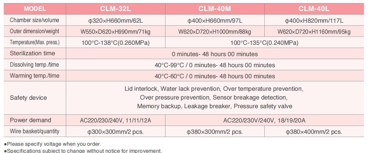 Nhiệt độ tối đa 135℃ (138℃: CLM-32L):